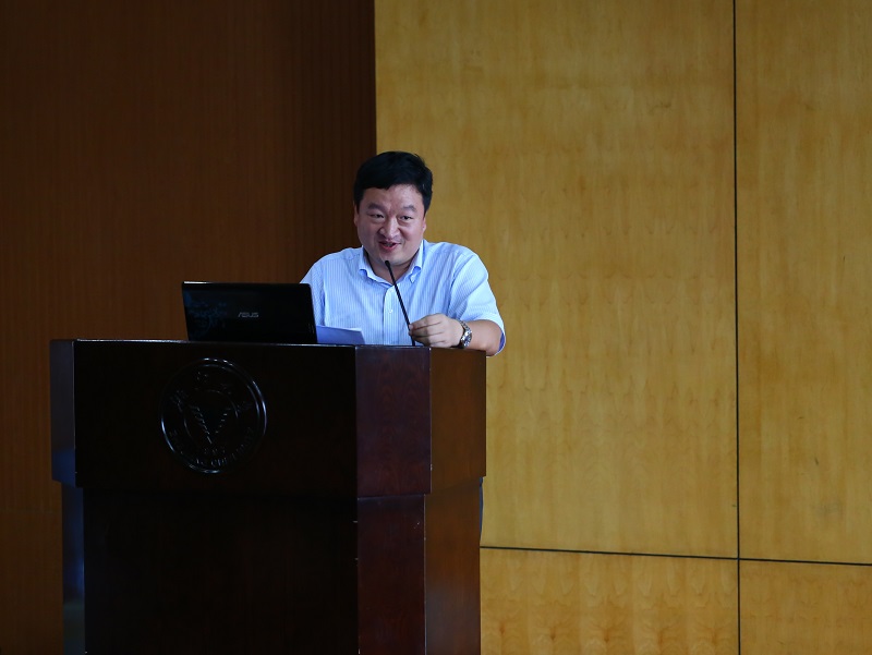 宣誓结束后,本次白大衣捐赠者蔡秀军院长上台,与同学们分享自己从医30年积累的经验。蔡院长悉心为同学们浓缩了“如何成为一个优秀医生”的六个关键词:博学、交叉、创新、责任、同情和宽容。凝结了丰富人生智慧的六个词,加上依据真实事例所进行的解说,蔡院长这一番讲话正是刚穿上白大衣的同学们所需要的,让人受益匪浅。