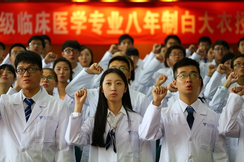 2014918,一年一度的医学院临床医学专业八年制学生白大衣授予仪式在医学院科研辅楼报告厅如期举行。532010级临床医学八年制学生由医学院的前辈们亲手授予穿上崭新的白大衣。白大衣承载着医学院老师对他们成长的深深祝福,也标志着他们完成了迈向神圣医学殿堂的第一步。