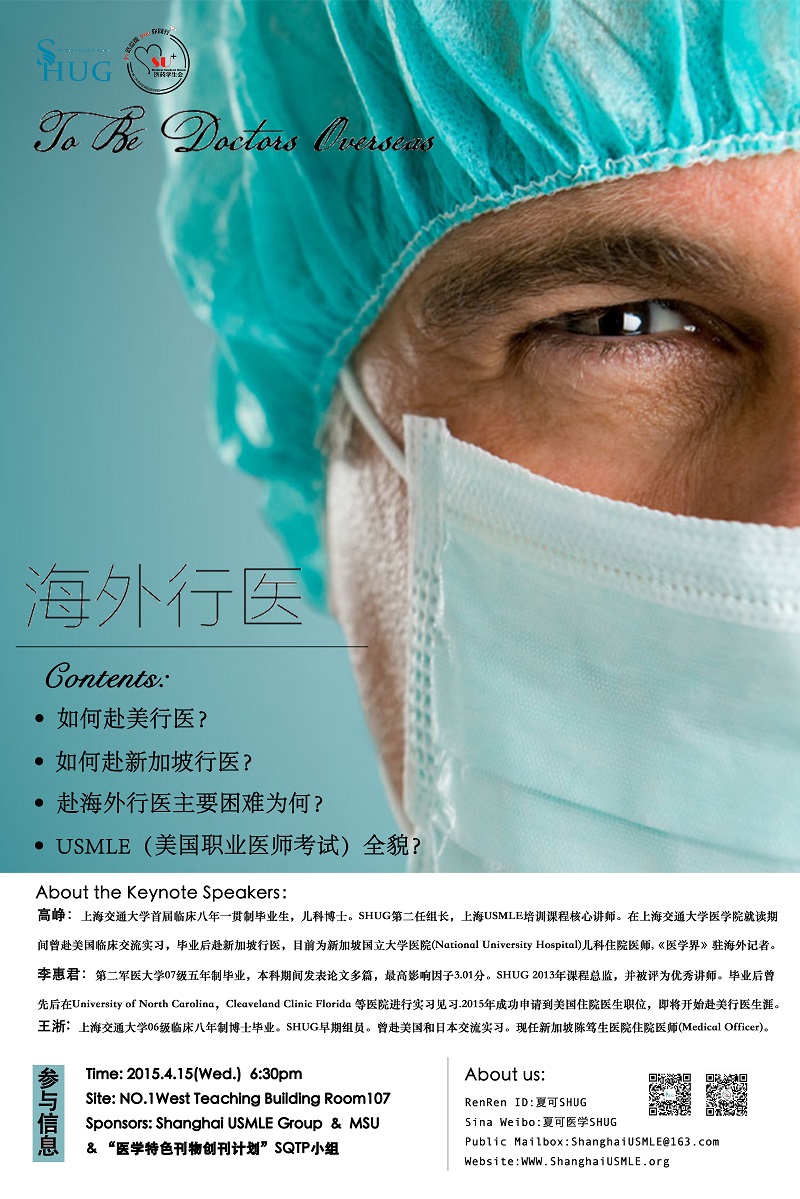 主办:SHUG(Shangh USMLE group)、医学院2014年SQTP项目“医学生特色刊物创刊计划”