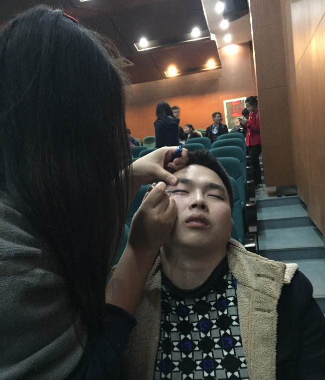 下午两点,彩排开始,各班级的同学们已然摩拳擦掌,搬物资、走台、化妆,忙得不亦乐乎。更有威武霸气的小伙伴,勾勒出浓墨重彩的眼线,只为上台时的惊艳。