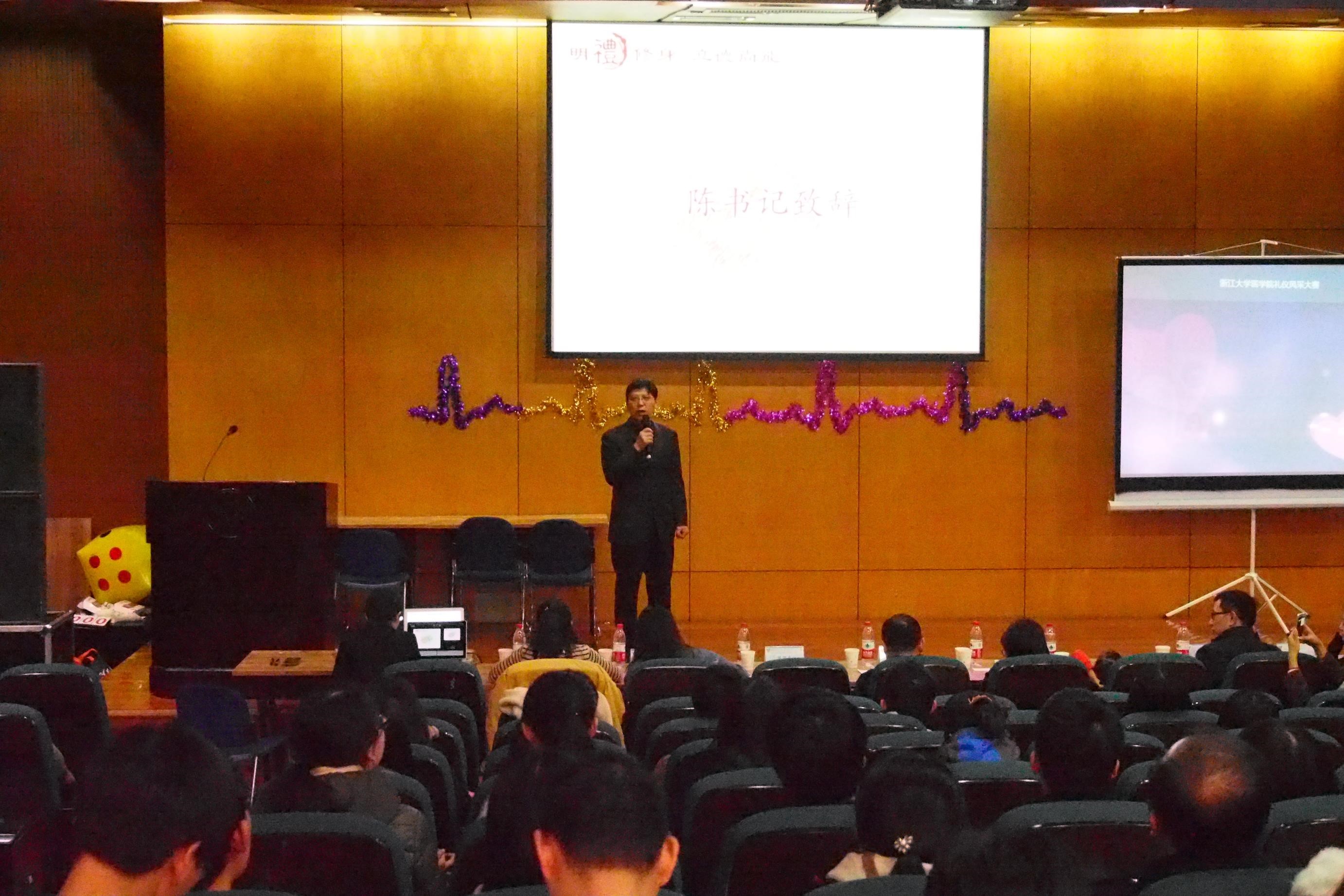 医学院团委书记陈超老师点评了当晚各个班级的表演,对同学们的认真准备做出了肯定,希望同学们把礼仪带入学习、带入生活。