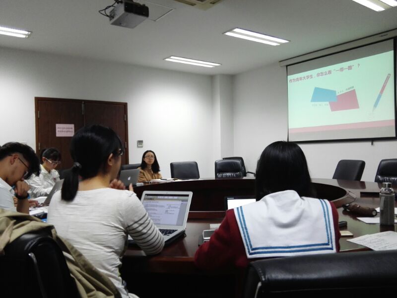 第一部分自然是对本期主题的集中学习。理论学习小组的同学们采用小视频和图解等方式引入话题,他们一改政治、政策固定而呆板的印象,让原本可能会有些枯燥的学习变得妙趣横生。除了介绍“五通”、“三同”等政治概念之外,小组成员还着重介绍了“一带一路”的理论基础——建立于马克思主义原理基础之上并发展而来的“两极理论”。让众人拓宽了新思路。