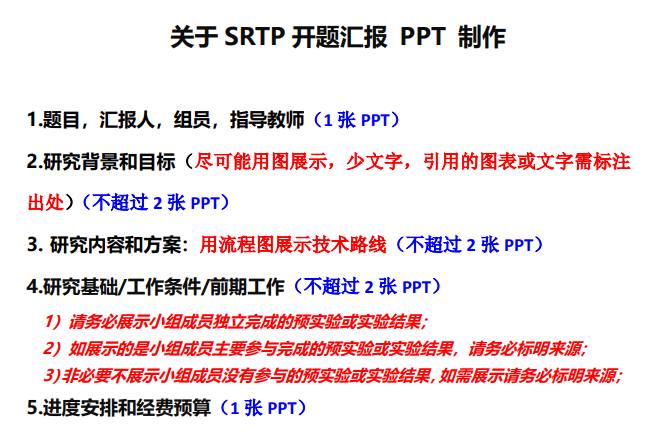 1、项目答辩采用PPT形式,一般为4-6张,主要内容为项目背景、项目创新点及特色、研究内容、实验条件、进度安排等,答辩PPT内容可参考附件2。并携带一份纸质版申报书。